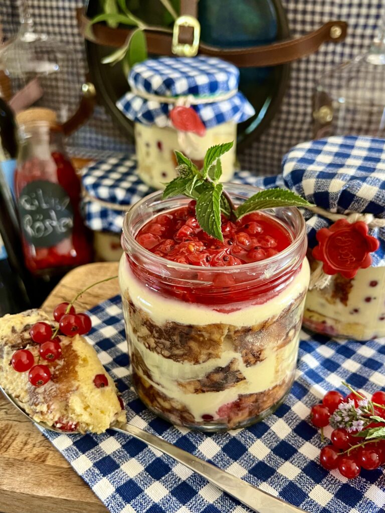 Ein österreichischer Klassiker neu interpretiert: Kaiserschmarren trifft Tiramisu – verfeinert mit einem fruchtig-säuerlichen Ribiselröster. Perfekt für Picknicks oder als Dessert zum Vorbereiten.