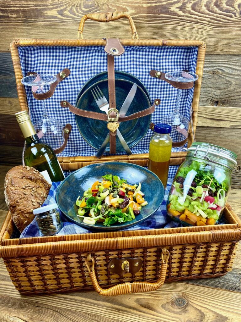 - Zubereitung:Vorbereitung:Marillen, geschälten Stangensellerie und Radieschen in kleine, mundgerechte Stücke schneiden.Den Lauch in dünne Scheiben schneiden.Schichten:Pflücksalat, geschnittenes Gemüse und Cranberries abwechselnd in ein großes Rexglas (oder ein anderes gut verschließbares Glas) schichten.Dressing:Alle Dressing-Zutaten in eine kleine Glasflasche oder ein Schraubglas füllen und kräftig schütteln.Kürbiskerne:In einer Pfanne mit etwas Olivenöl langsam anrösten, leicht salzen und beiseite stellen.Servieren:Kurz vor dem Servieren das Dressing über den Salat geben, das Glas verschließen und sanft durchschütteln.In eine Schüssel oder auf einen Teller geben und mit den gerösteten Kürbiskernen bestreuen.