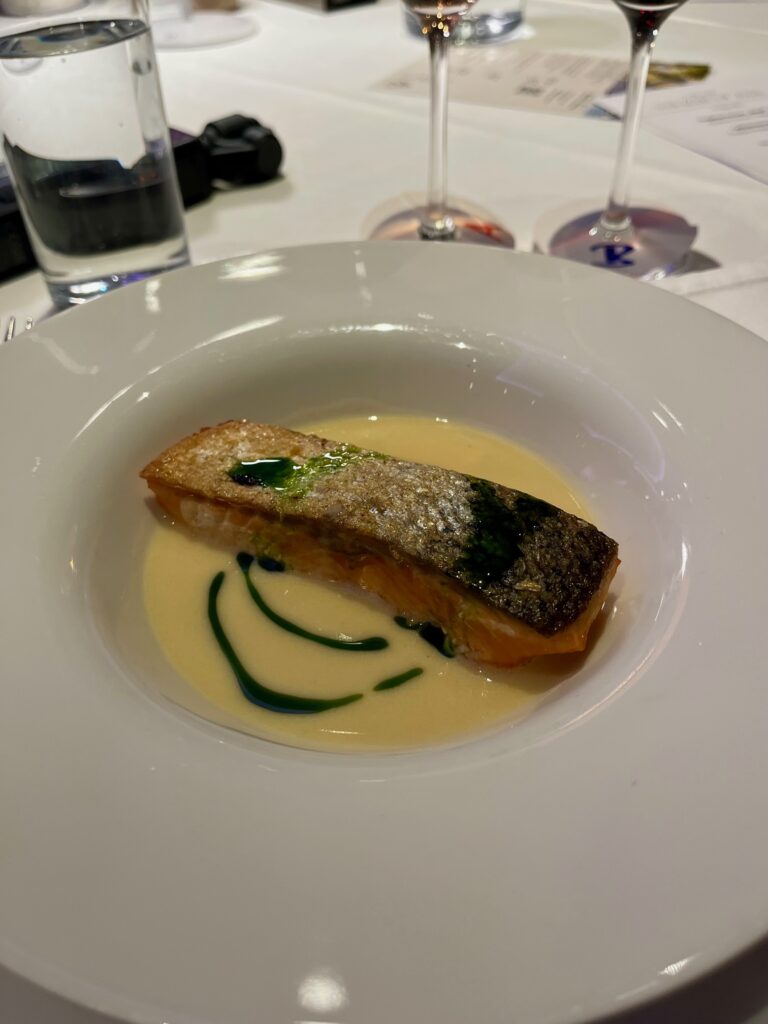 Zum Atlantiklachs mit Beurre Blanc und grünem Öl servierte Grassl einen Rosé 2024, während Gager die bekannte Cuvée Quattro ins Rennen schickte. Mit zehn Stimmen Vorsprung holte sich Grassl den dritten Punkt und fixierte damit vorzeitig den Finaleinzug.