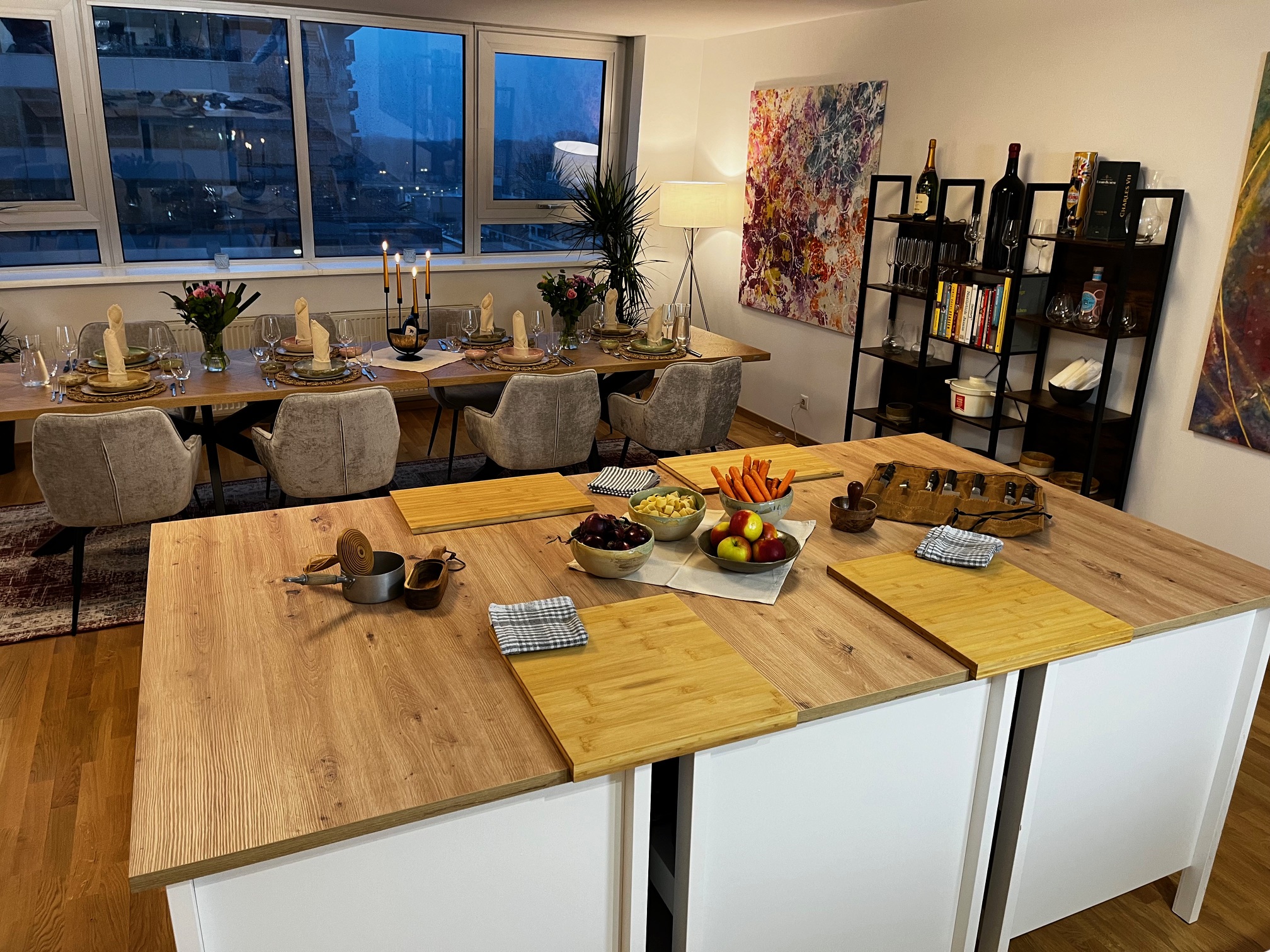 Der Raum ist für 6-16 Personen zu mieten (Kochworkshops bis 12 Personen). Es erwartet Sie eine private Wohnzimmeratmosphäre im Stilvollen Atelier. Inkl. ist die Vollausstattung für bis zu 12 Personen (Teller, Besteck, Geschirr, Gläser). Optional auch Getränke & Speisen möglich.